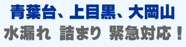 青葉台、上目黒、大岡山での水の困った即解決!急な水道トラブルに緊急でかけつけ訪問し、蛇口の水漏れ、トイレ詰まり、排水の溢れ、タンクの故障など修理いたします。
